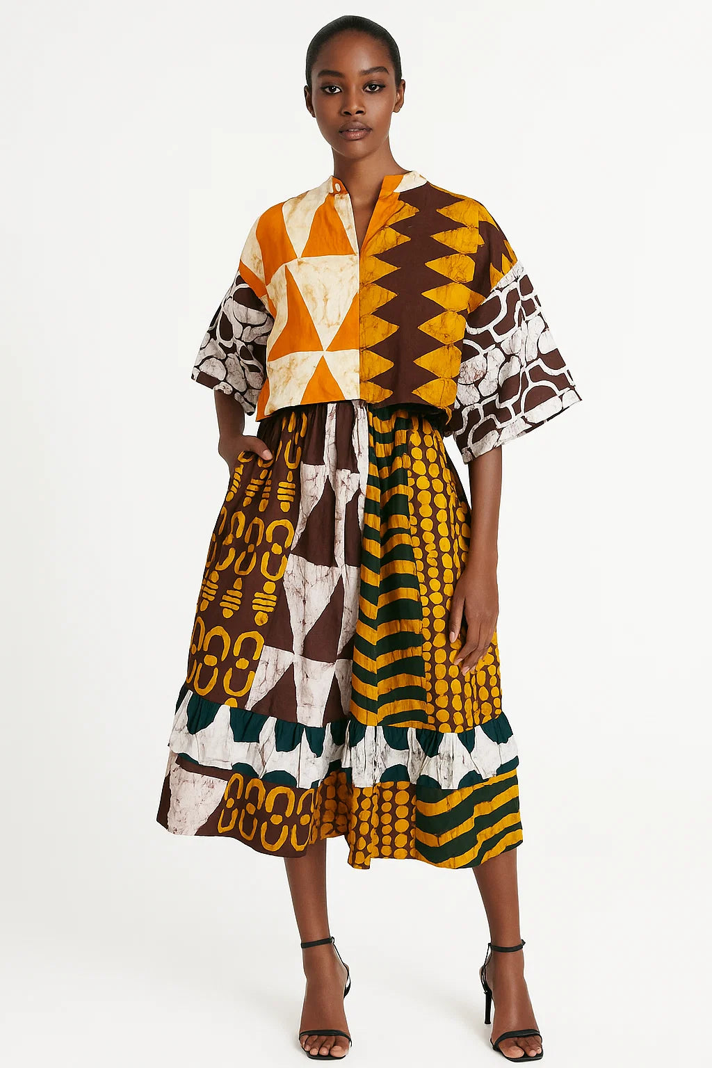 Each Dye Lab piece is made from small batches of hand-dyed textiles using batik wax to achieve our own formulated colors and prints and produced in Nigeria working with local artisans.