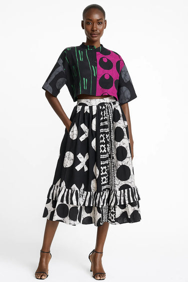 Each Dye Lab piece is made from small batches of hand-dyed textiles using batik wax to achieve our own formulated colors and prints and produced in Nigeria working with local artisans.