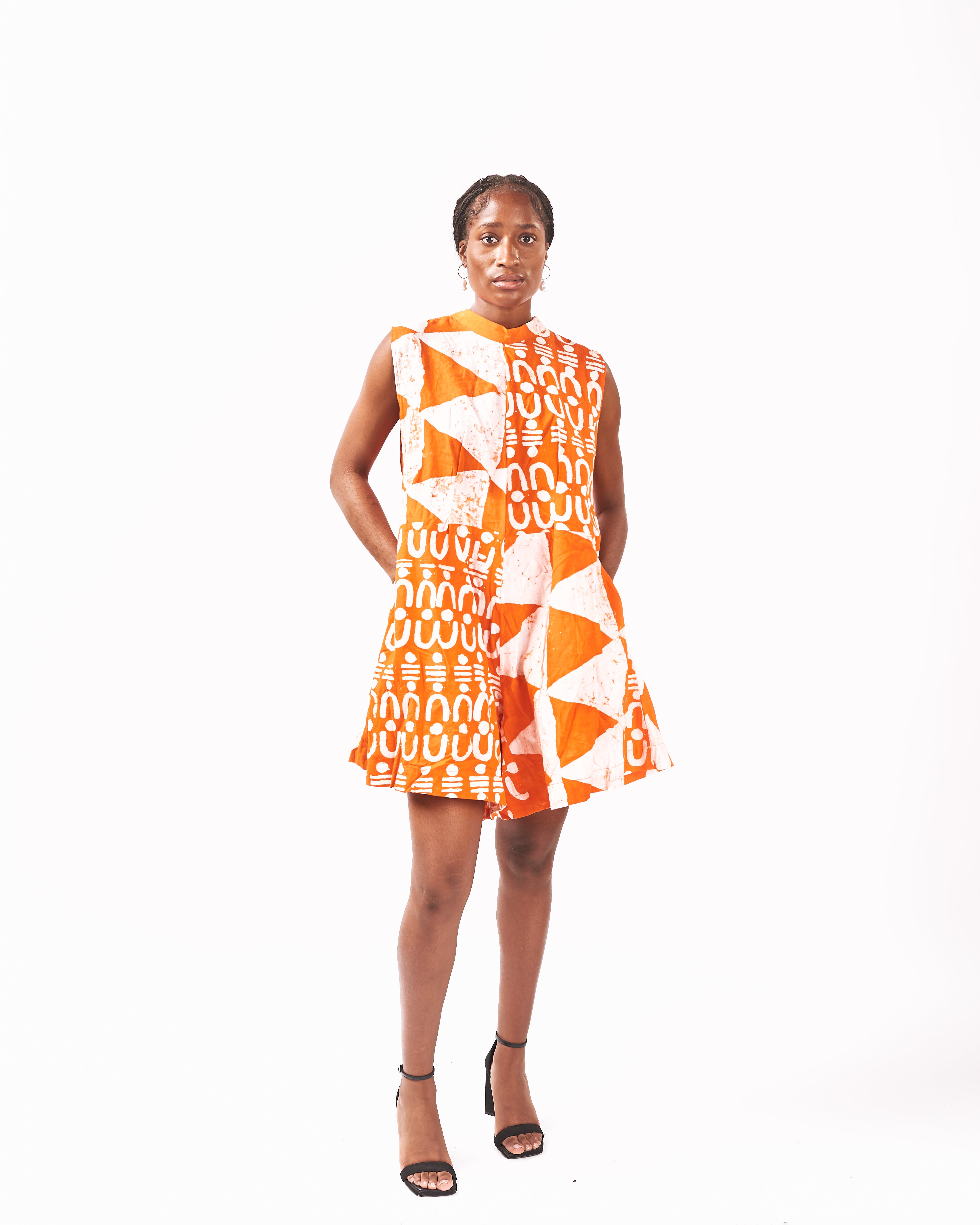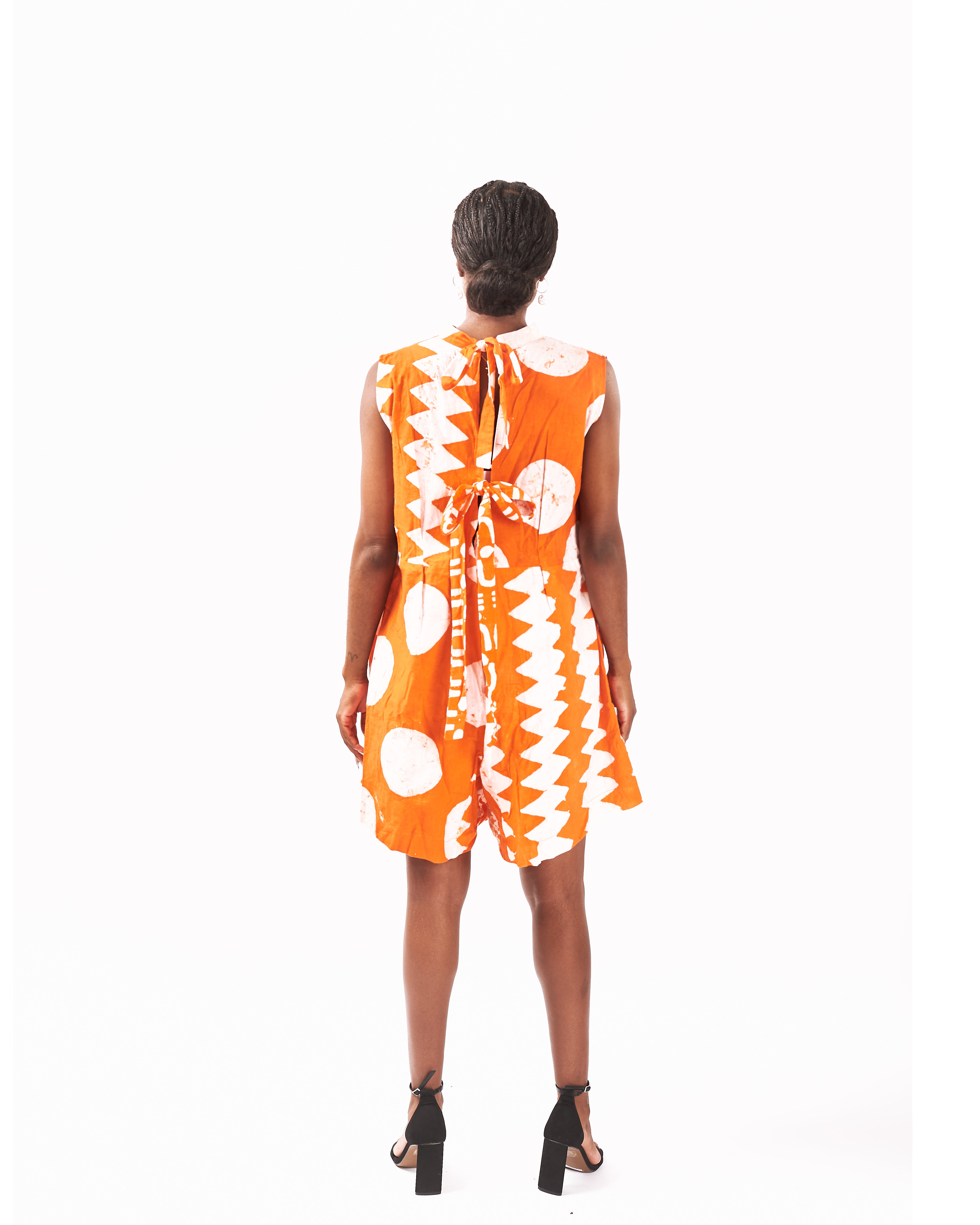 Step out in style with our hand-dyed Playsuit, featuring bold geometric patterns for a contemporary edge. Crafted from breathable cotton, this sleeveless design balances structure with playfulness, making it perfect for any occasion. Dress it down with sandals for daytime adventures or elevate the look with heels for a chic night out.
