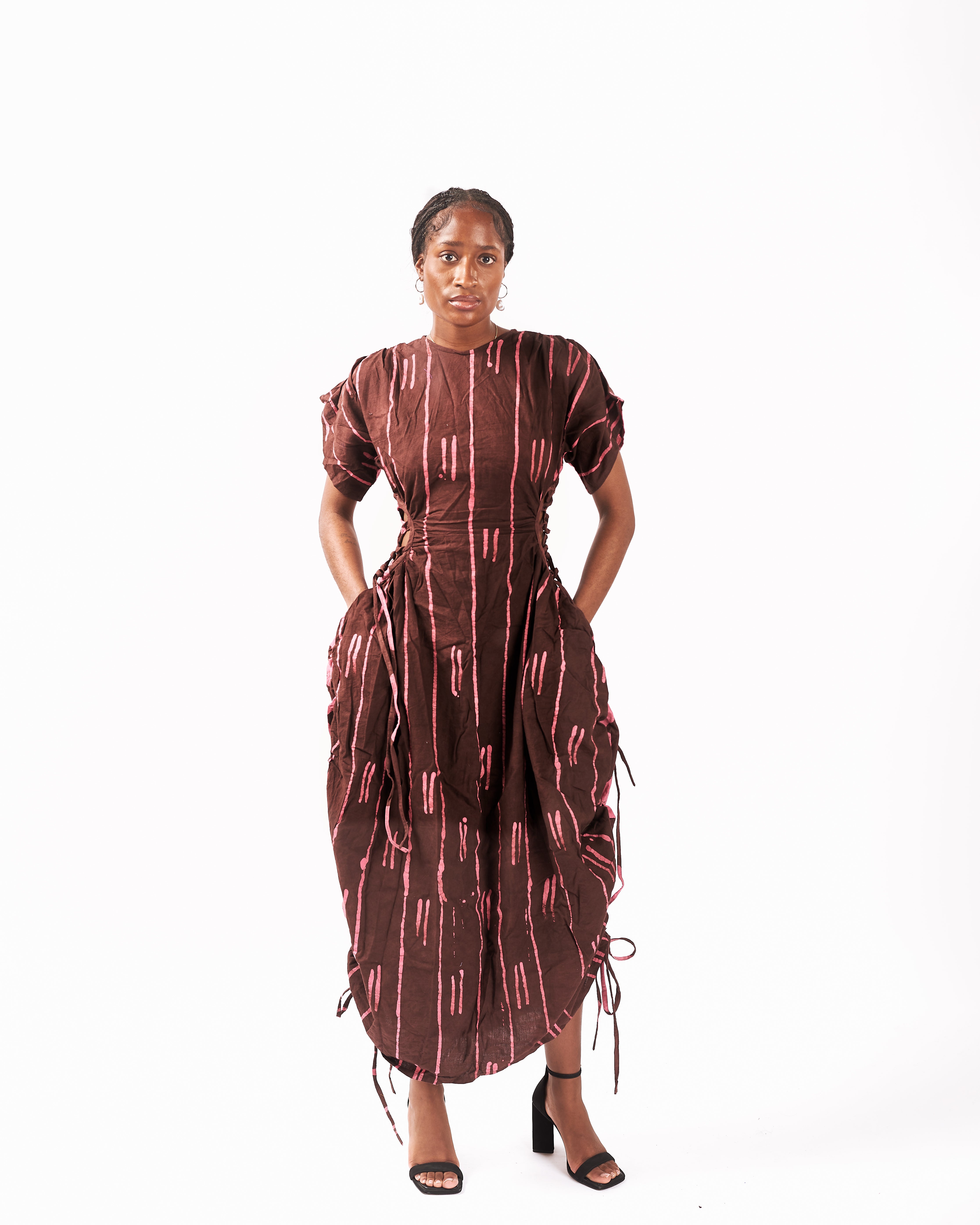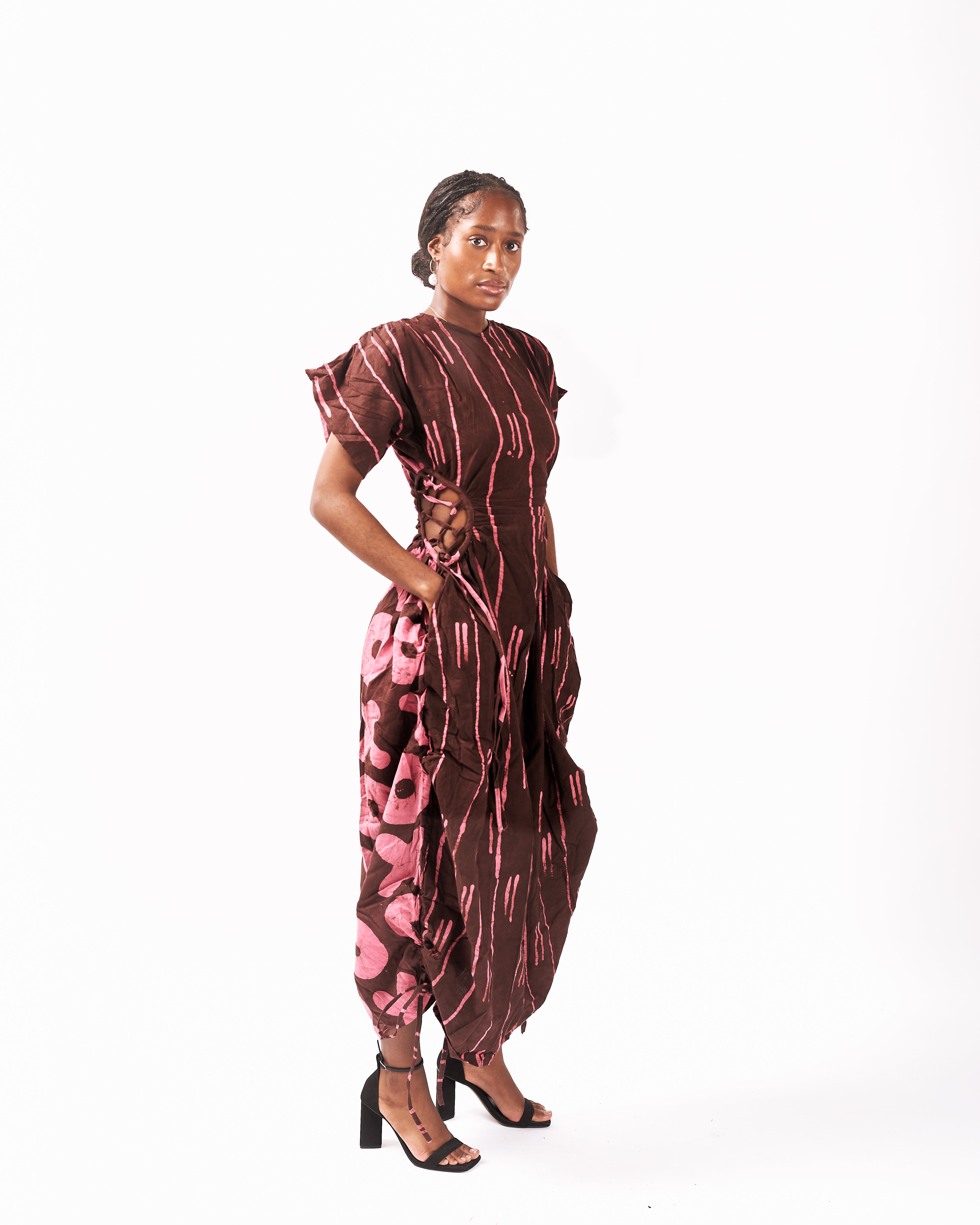 Each Dye Lab piece is made from small batches of hand-dyed textiles using batik wax to achieve our own formulated colors and prints and produced in Nigeria working with local artisans.