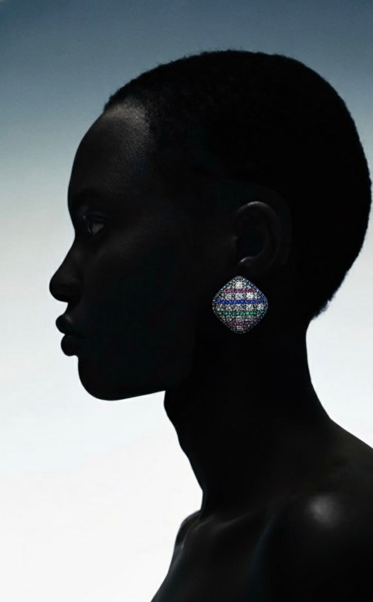 Enhance your outfits with our BM Earrings. These stunning earrings feature a unique multicolor stud design, adding a touch of sophistication to any look. Made with high-quality diamonds, they are sure to elevate your style and make a statement. Perfect for any occasion.