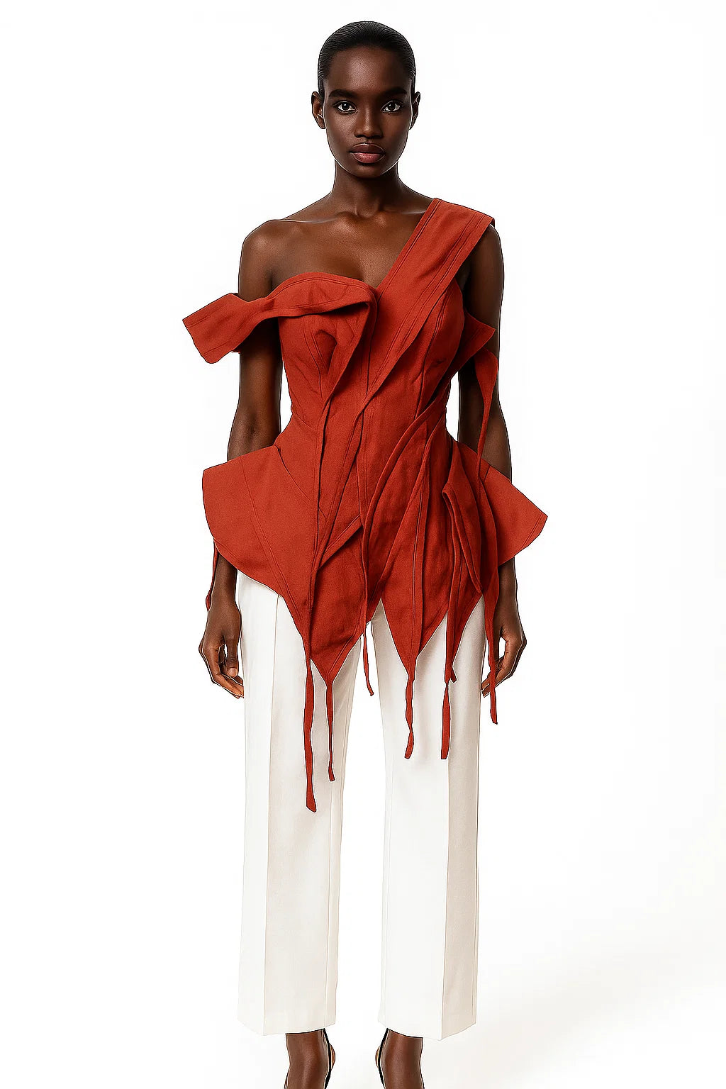 The Cisca Cecil Tessa Top brings a playful twist with its asymmetric design and carefully crafted details. Its a-line cut flatters your silhouette while adding a unique edge to your look. Perfect for those who love to stand out with effortless style and a fun flair.