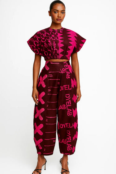 Each Dye Lab piece is made from small batches of hand-dyed textiles using batik wax to achieve our own formulated colors and prints and produced in Nigeria working with local artisans.