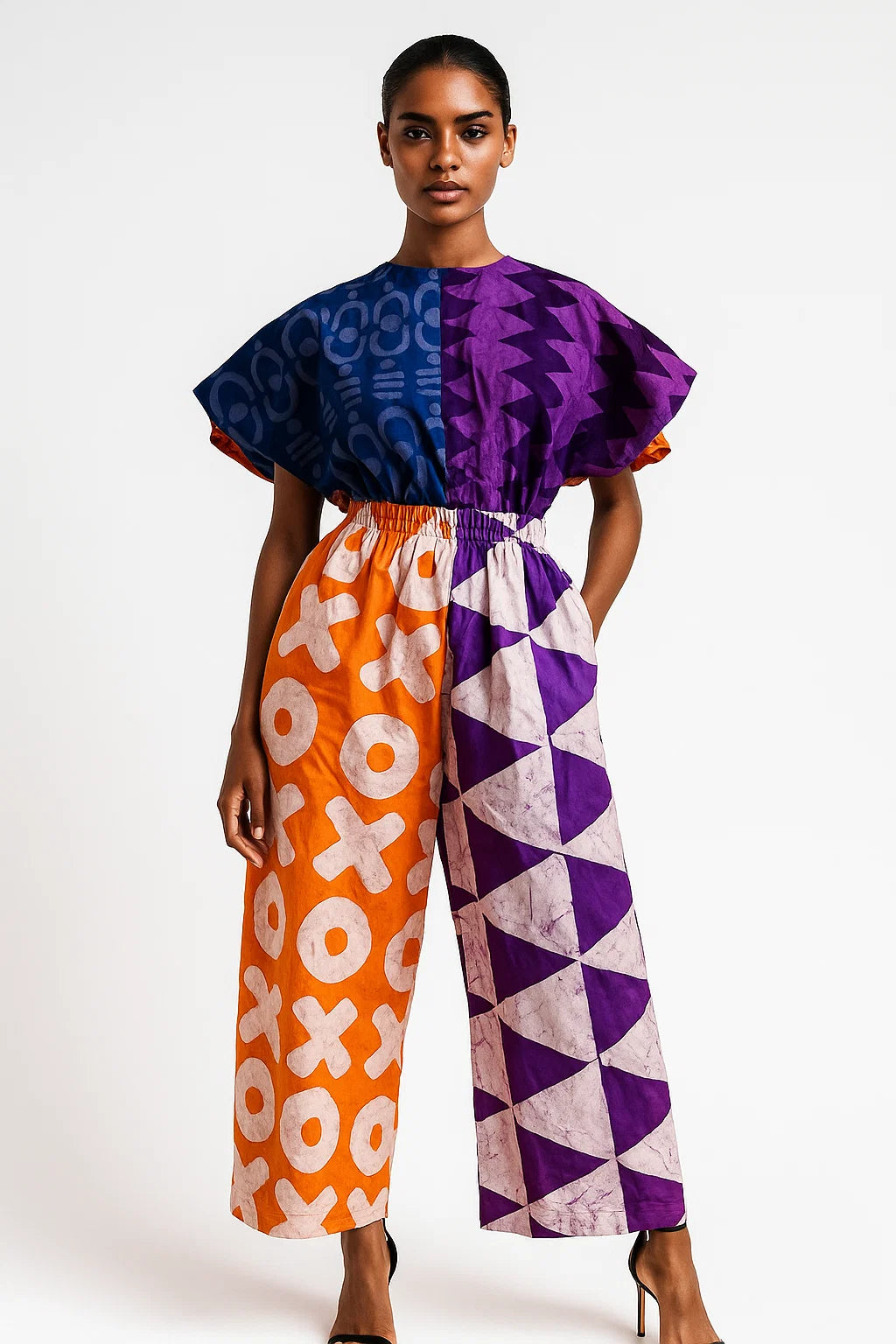 Each Dye Lab piece is made from small batches of hand dyed textiles using batik wax to achieve our own formulated colors and prints. and produced in Nigeria working with local artisans.
