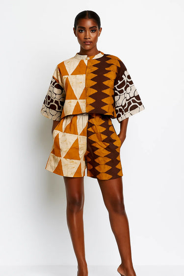 Each Dye Lab piece is made from small batches of hand dyed textiles using batik wax to achieve our own formulated colors and prints and produced in Nigeria working with local artisans.
