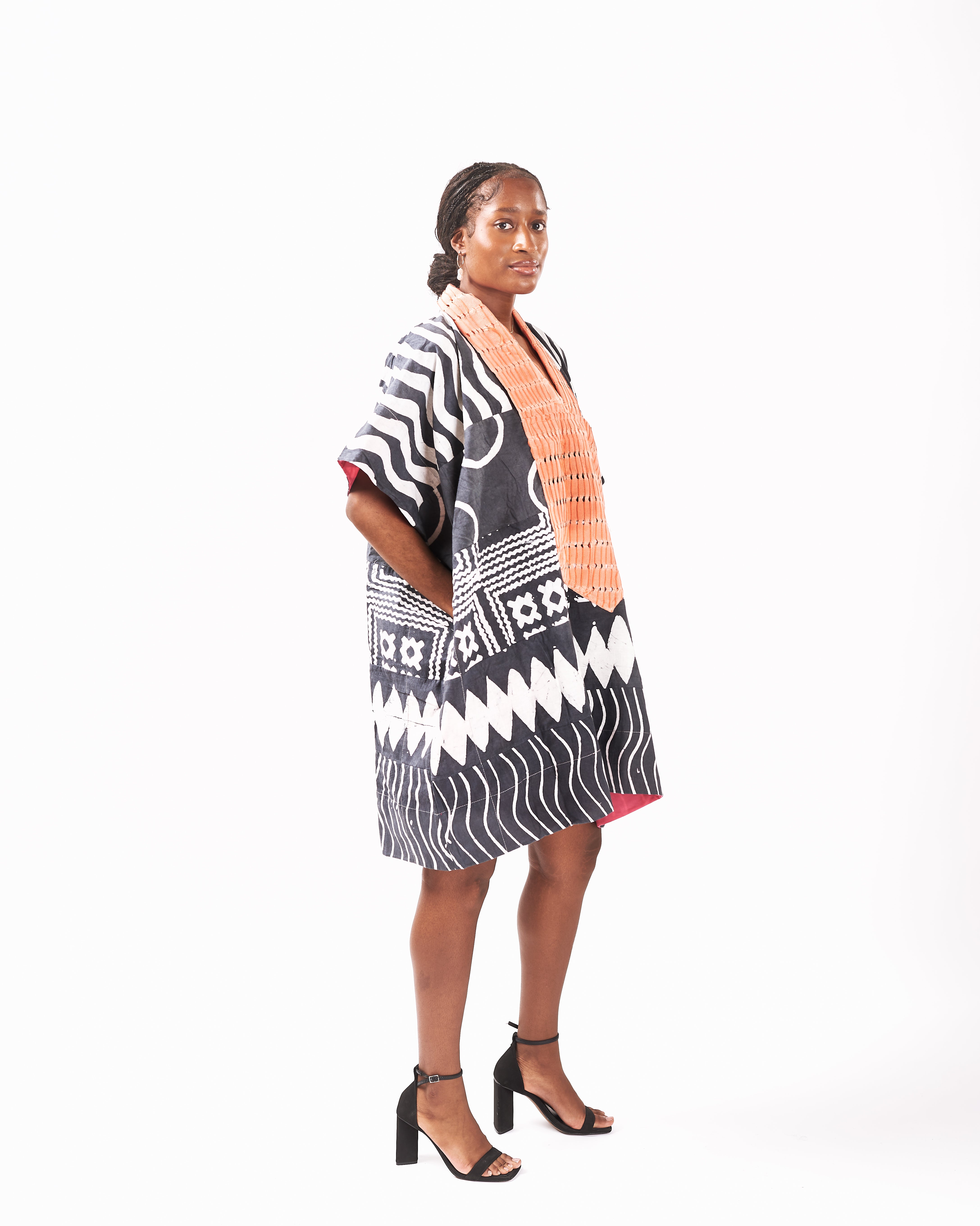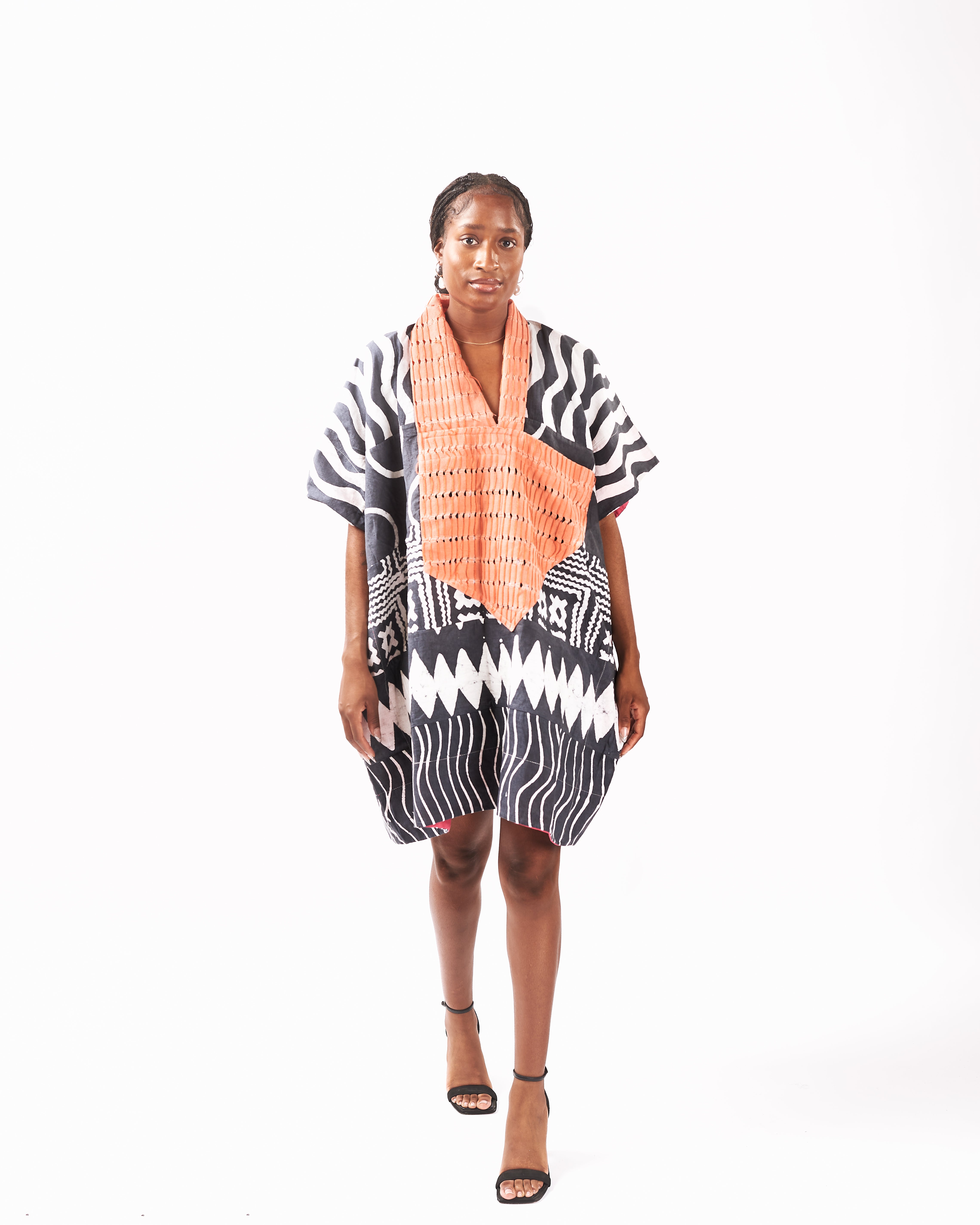 Our signature Agbada is reimagined in a mini size in a multicolour multi-print option - pair with shorts and pants, or wear on its own.