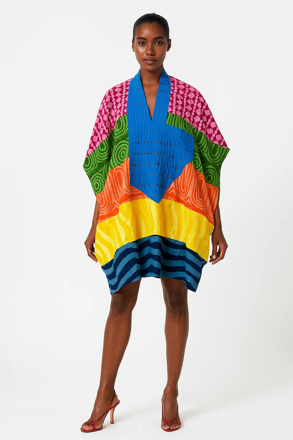 Our signature Agbada is reimagined in a mini size in a multicolour multi-print option - pair with shorts and pants, or wear on its own.