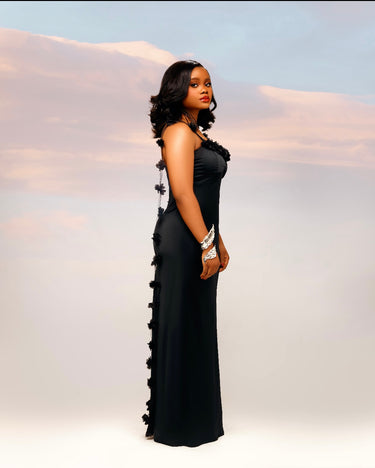 The Aimi Dress, a timeless slip dress crafted from luxurious silk fabric. It features delicate flower-detail sleeves that can be styled in multiple ways, allowing you to personalize your look. Whether worn for a romantic evening, a special occasion or an elevated everday monet, Aimi - meaning “love” - emobodies the softness and beauty of femininity.